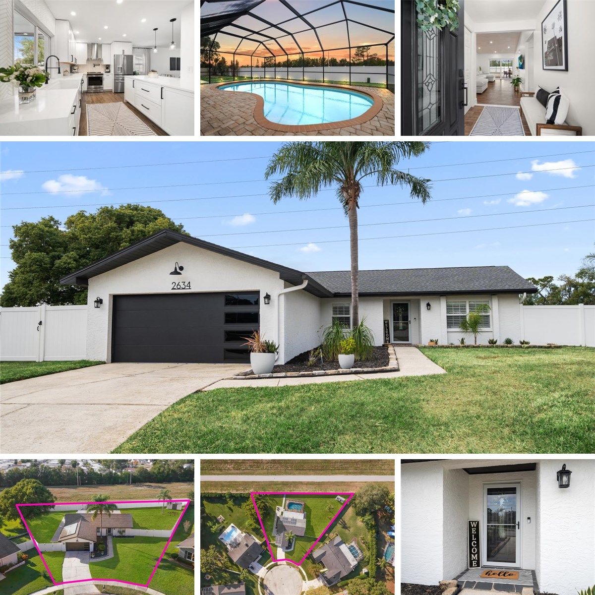 Perfectly suited for the most discerning buyer, this completely and beautifully fully remodeled smart home sits quietly on a desirable cul-de-sac, offering both privacy and luxury. Step inside to discover modern elegance—new LED recessed lighting, wide-plank tile flooring throughout, and an open, bright floorplan designed for effortless living. The dining room’s large picture window fills the space with natural light, enhancing the home’s airy ambiance. The show-stopper kitchen is a masterpiece, boasting white shaker soft-close cabinetry, a full-height Italian tile backsplash, quartz waterfall countertops, pot-filler, high-end stainless-steel appliances, an apron sink, and a breakfast bar. The kitchen is open to the living room with a striking white-sashed tongue-and-groove vaulted ceiling and impact sliders leading to the pool for easy and effortless entertaining. The primary suite is a sanctuary with a beautifully updated ensuite bath and a versatile dressing room that could serve as a walk-in closet, private office, or sitting area—plus direct access to the sparkling pool. Two additional bedrooms are equally well-appointed, and both bathrooms shine with floor-to-ceiling subway tile, soft-close custom cabinetry, Toto toilets—including a heated electric Toto in the primary bath. The enormous fenced backyard is your private resort featuring a renovated lanai, multiple entertaining areas, perfect for grilling and a refreshing pool ideal for outdoor gatherings or relaxing. A patio off the garage leads to a gated walkway accessing the Duke Energy Trail, with nearby sidewalks connecting to parks and ballfields. Additional upgrades include 2017 HVAC, a brand-new 2025 240-amp electrical panel for a car charger, 2024 vinyl fencing, and a 2024 DE pool filter. Conveniently located near Countryside Country Club, the library, shopping, dining, and world-famous beaches—this home truly checks every box. Move in and live beautifully!